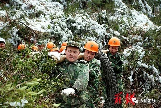 不會(huì)忘記,2008年2月13日第一時(shí)間趕到江西撫州城南縣的某摩步旅官兵,不顧旅途疲勞,立即投入緊張搶修電網(wǎng)中。