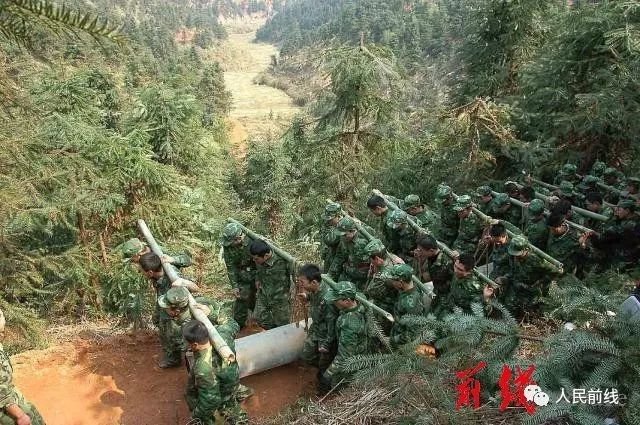 不會(huì)忘記,2008年2月15日,在海拔1120多米的山上,某部官兵一趟就要翻七座山頭,經(jīng)過十幾處90度彎道,五六處70度陡坡,提前完成了運(yùn)送塔基上山的任務(wù)。(任龍 攝)