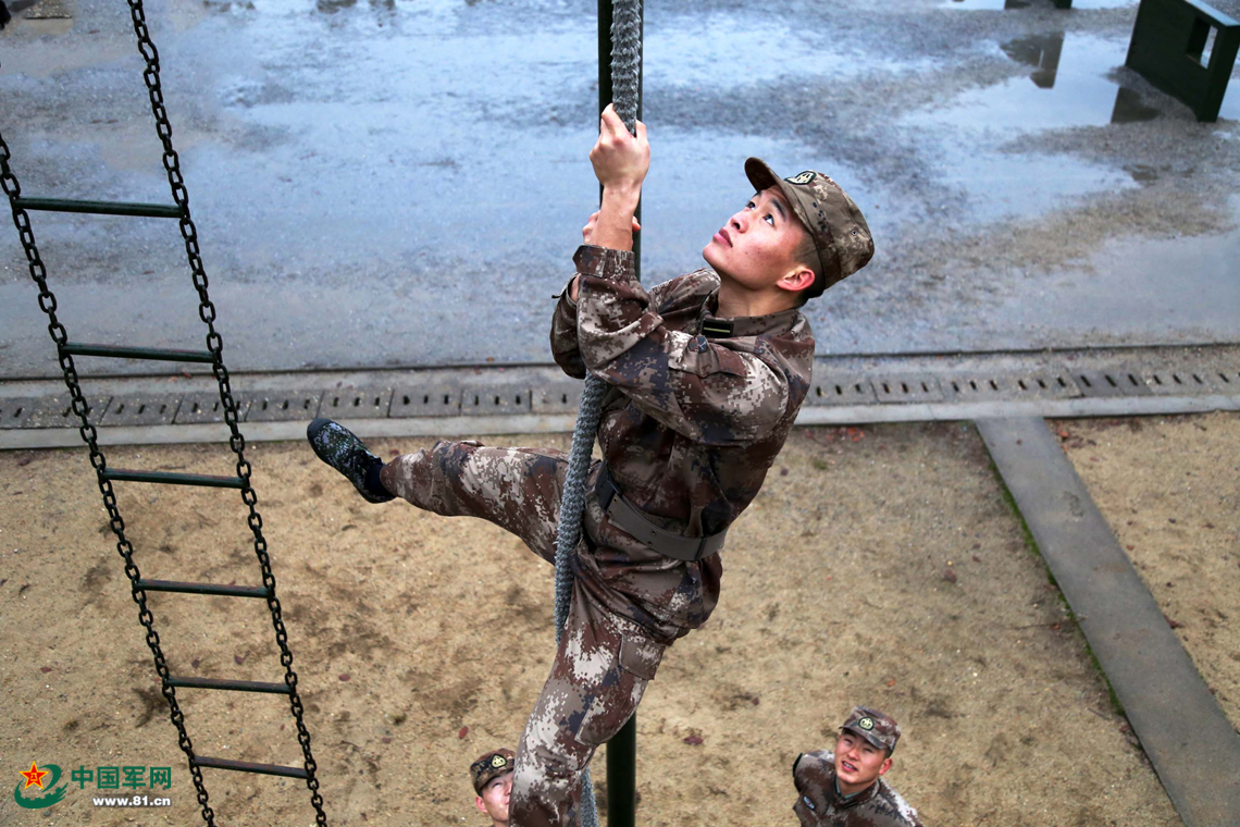 正在進行攀繩訓(xùn)練。