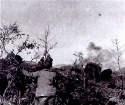 向敵機(jī)射擊中的志愿軍輕機(jī)槍手。