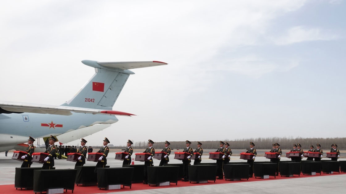 當(dāng)天上午11時20分許,解放軍空軍一架專機平穩(wěn)降落在遼寧沈陽桃仙國際機場,這架飛機當(dāng)天從韓國仁川國際機場起飛回國,機上載有20位志愿軍烈士的遺骸及相關(guān)遺物。專機進入中國領(lǐng)空后,兩架戰(zhàn)斗機全程護航,用空軍特有的方式向志愿軍烈士致敬。