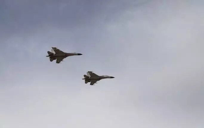 兩架戰(zhàn)機(jī)起飛升空,迎接英烈回家。(圖/國(guó)防時(shí)空)
