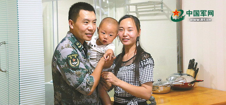 第83集團軍某旅士官高懸超一家在部隊公寓房團聚。 韓 玄攝
