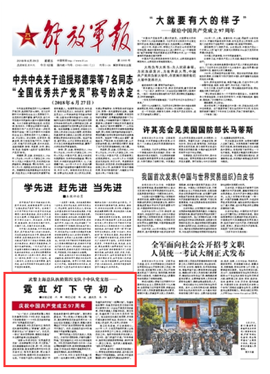 “七一”前夕,記者來到武警上??傟爤?zhí)勤第四支隊十中隊采訪,恰逢總隊下發(fā)表彰通報——十中隊黨支部再次被評為“優(yōu)秀基層黨支部”。