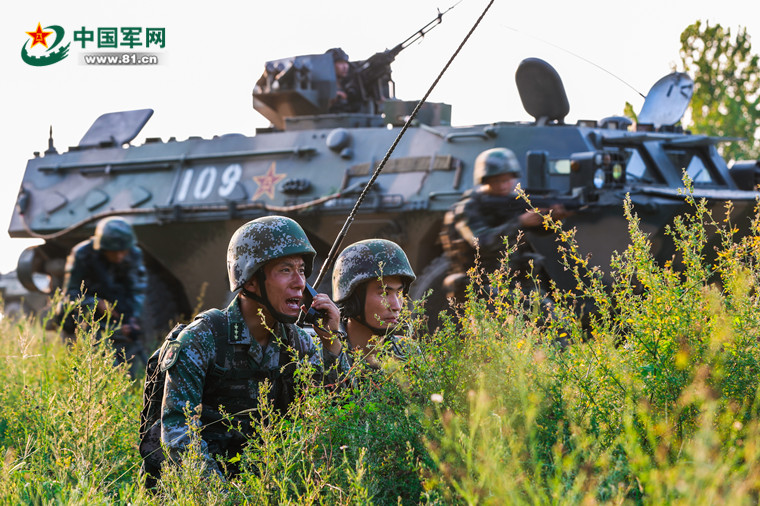 紅一連模擬實戰(zhàn)背景,在某陌生地域開展進(jìn)攻戰(zhàn)斗演練。連長周光魁在指揮戰(zhàn)斗。