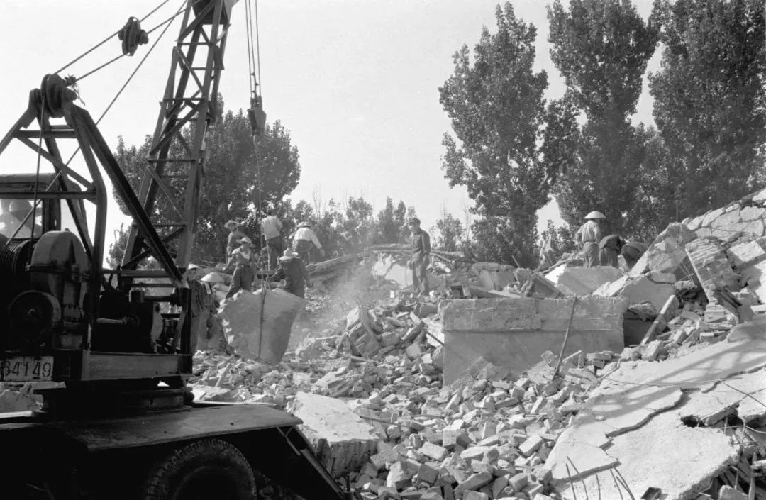 1976年7月28日,強(qiáng)烈地震中,唐山礦業(yè)學(xué)院宿舍樓被震毀。新華社記者官天一攝
