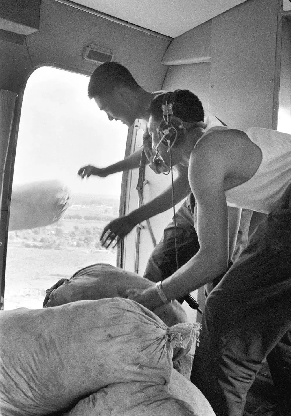 人民解放軍把祖國(guó)各地人民支援災(zāi)區(qū)的抗震救災(zāi)物資,空投給災(zāi)區(qū)人民群眾。(1976年8月1日發(fā))新華社記者韓曉華攝