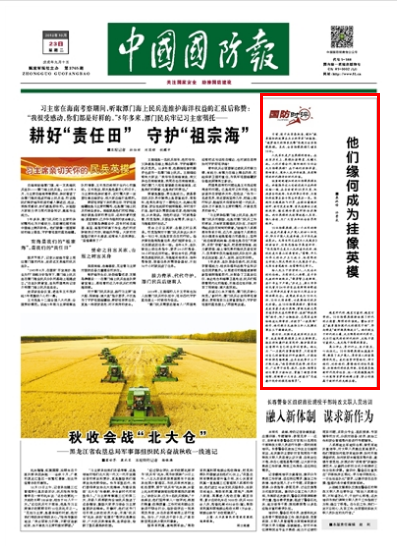 人們不禁會問,緣何他們10位會成為掛像英模?在于他們功勛卓著,影響重大,黨和人民評價較高,具有鮮明的時代精神和時代價值。請關(guān)注《中國國防報》的報道——