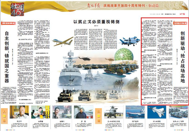 改革開(kāi)放以來(lái),在科技創(chuàng)新驅(qū)動(dòng)下,武器裝備跨越式發(fā)展。一個(gè)個(gè)故事,匯成了鮮活的強(qiáng)軍故事會(huì),成為“不斷提高科技創(chuàng)新對(duì)人民軍隊(duì)建設(shè)和戰(zhàn)斗力發(fā)展的貢獻(xiàn)率”的生動(dòng)實(shí)踐。請(qǐng)關(guān)注今天出版的《解放軍報(bào)》帶來(lái)的報(bào)道——