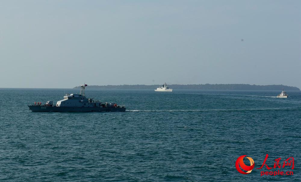 第30批護(hù)航編隊駛進(jìn)西哈努克港前,柬海軍為我編隊伴航。來永雷攝