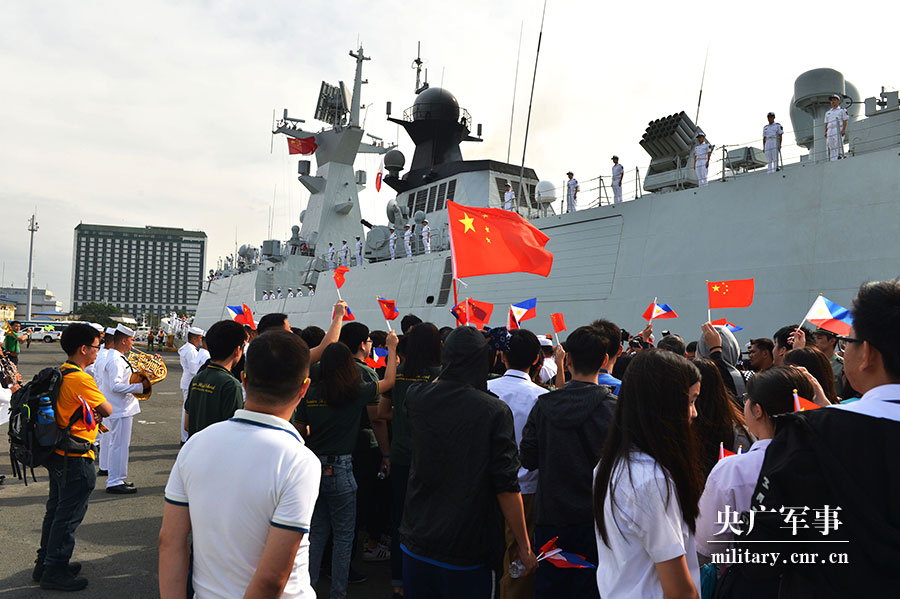 當?shù)貢r間上午10時,菲方為中國海軍艦艇編隊舉行了隆重的歡送儀式,菲海軍艦隊副司令布爾吉諾準將及菲海軍官兵代表參加歡送儀式,駐菲律賓大使館檀勍生公參率領(lǐng)使館館員、中資機構(gòu)、華人華僑代表等在碼頭為海軍護航編隊官兵送行。