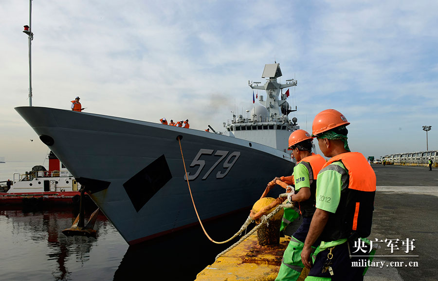 邯鄲艦離開(kāi)馬尼拉港。來(lái)永雷 攝