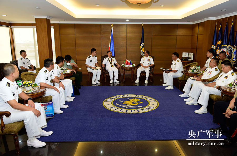 編隊(duì)指揮員許海華一行拜會(huì)菲海軍司令。來(lái)永雷 攝
