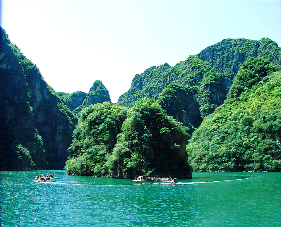“水比漓江清,山比三峽險”,這是中外游客對龍慶峽景區(qū)奇山秀水的一致評價。乘船游覽龍慶峽7公里的水面,仿佛進入一幅巨大的山水畫卷?!吧饺绫逃耵?,水如青羅帶”,在山環(huán)水繞之中,大自然造就的鎮(zhèn)山如來、鐘山、鳳冠島、東大寨、月亮灣等30余處景觀撲面而來,讓人大開眼界,嘆為觀止,是京郊避暑勝地。