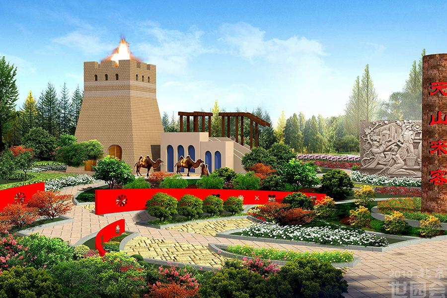 展園主要結(jié)合“一帶一路”主題思想,著重體現(xiàn)新疆特色的同時(shí)表現(xiàn)出新疆與時(shí)俱進(jìn),發(fā)展,現(xiàn)代的風(fēng)貌。從平面視角打造景觀,自然生態(tài)中同時(shí)能體現(xiàn)民族文化,將新疆飛速發(fā)展的面貌展示給游人。突出展示 “絲綢之路經(jīng)濟(jì)帶”建設(shè)發(fā)展歷史重要節(jié)點(diǎn)以及“一帶一路”橋頭堡建設(shè)發(fā)展的豐碩成果。