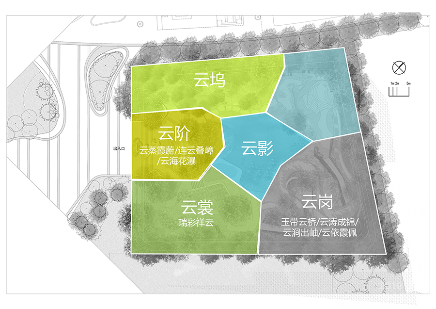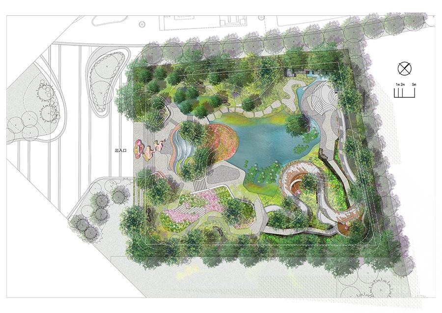在鋪裝、扶手欄桿、座椅、小品構(gòu)筑物、展示輔助系統(tǒng)等其他細(xì)節(jié)中,設(shè)計(jì)師們還從繪畫藝術(shù)中獲取靈感,借鑒暈染、潑墨、點(diǎn)彩、涂抹、枯筆等技巧來(lái)表現(xiàn)不同質(zhì)感的植物造景。