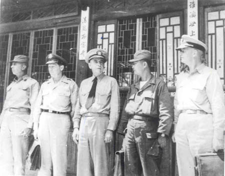 參加朝鮮停戰(zhàn)談判的“聯(lián)合國軍”和南朝鮮軍方面首席代表美國海軍中將特納·喬埃(中)、白善燁(右二)等。