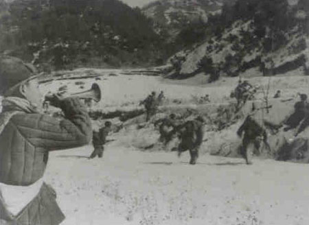 志愿軍在橫城反擊戰(zhàn)中向敵發(fā)起進(jìn)攻。