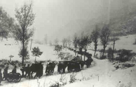 志愿軍某炮兵分隊(duì)向“三八線”進(jìn)發(fā)。