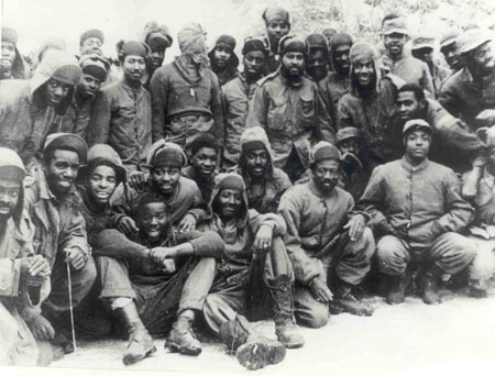 1950年11月,在志愿軍的軍事壓力和優(yōu)待俘虜政策的感召下,美軍第25師第24團1個黑人連(115人)士兵向志愿軍繳械投降。