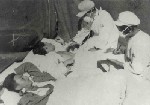 8月的一天,羅盛教與炊事班的同志到陣地送飯回來,美軍發(fā)射的炮彈越過頭頂,落在南映里和平村莊的土地上,發(fā)出震耳欲聾的巨響。炮聲過后,羅盛教聽到遠(yuǎn)處傳來孩子的哭聲。他冒著美軍飛機(jī)的掃射轟炸,翻越一座山循哭聲而去,在一個(gè)防空洞旁邊,發(fā)現(xiàn)一個(gè)小孩子,正撲在一名婦女的胸脯上,邊哭邊叫著“阿媽妮”。那個(gè)孩子的身上、臉上、手上沾滿了鮮紅的血。母親手里緊緊握住小鋤把,背上的嬰兒已經(jīng)被炸得只剩下半截身子了。羅盛教有生以來第一次目睹如此悲慘的景象,他臉色鐵青,緊握拳頭。此時(shí),美軍扔下的炮彈還在爆炸。他不顧一切,把孩子抱起來,交給附近的一位朝鮮老大爺。爾后,他回去安葬了那位朝鮮母親和她的孩子。晚上,羅盛教躺在床上,怎么也不能入睡……夜已經(jīng)很深了,他打開手電筒,翻開日記本,寫了一首詩(shī)。詩(shī)中寫道:當(dāng)我被侵略者的子彈打中以后,希望你不要在我的身體面前停留,應(yīng)當(dāng)繼續(xù)前進(jìn),為千萬朝鮮人民和犧牲的同志報(bào)仇……