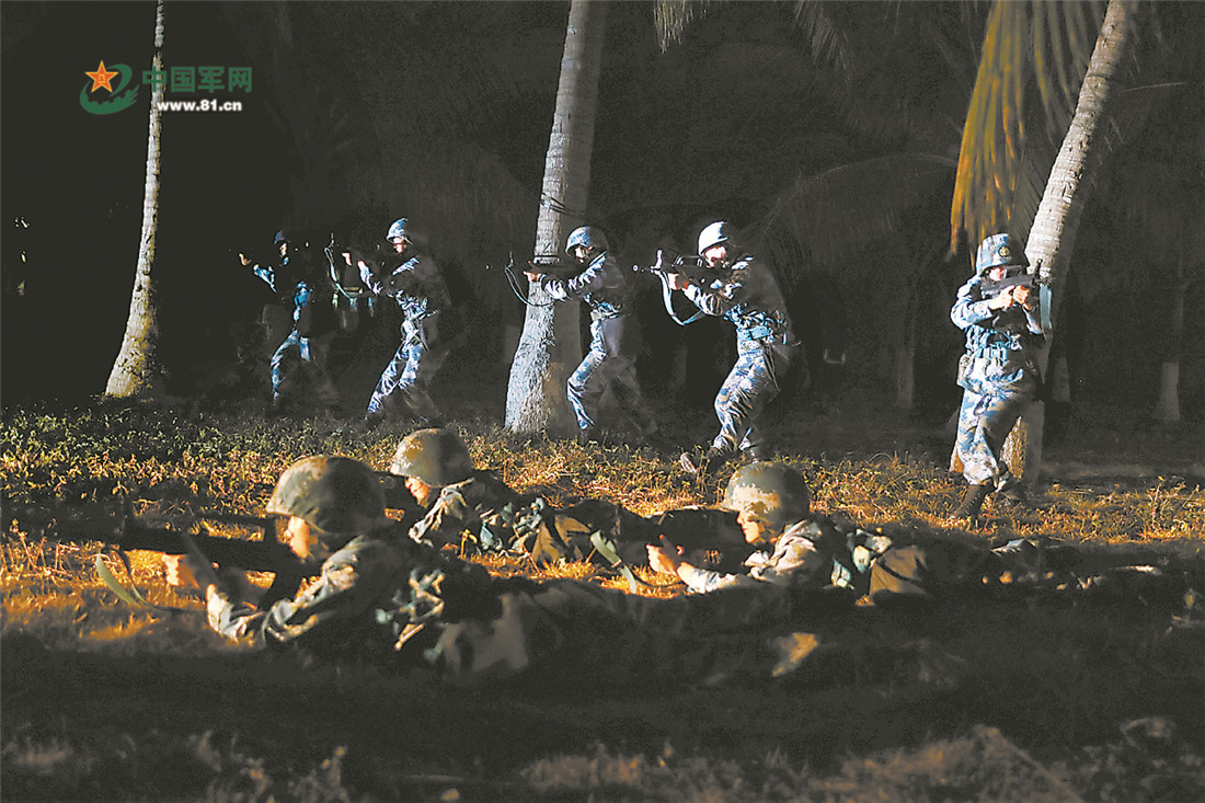 女兵開展夜間戰(zhàn)術(shù)訓(xùn)練。