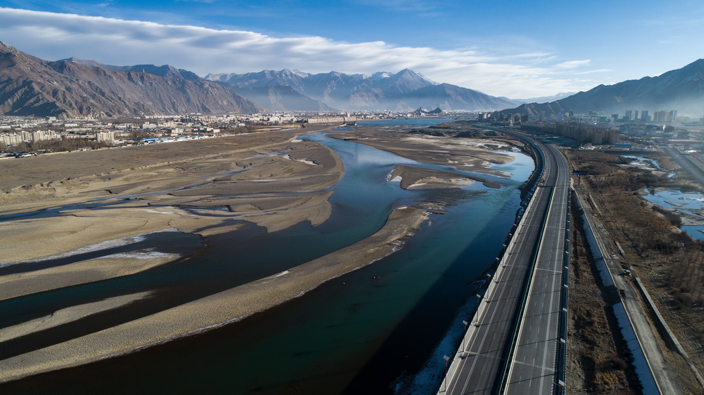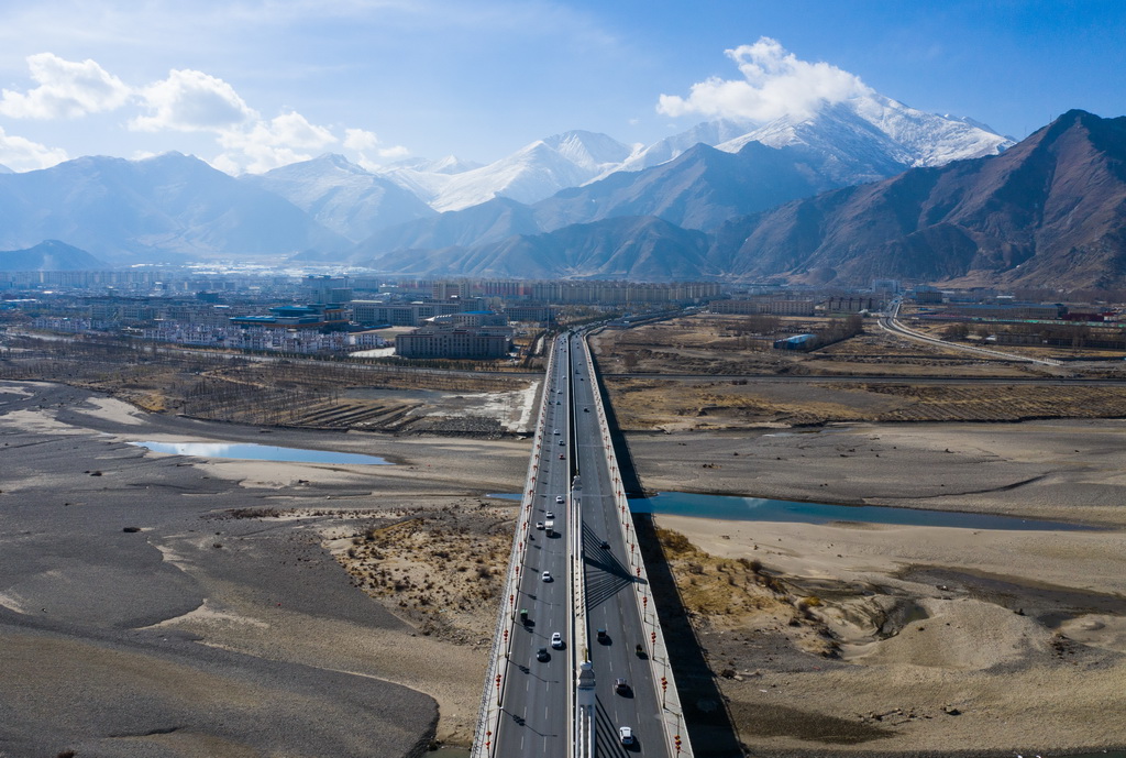 這是橫跨在拉薩河上的拉薩市區(qū)公路(4月3日無人機拍攝)。新華社記者 晉美多吉 攝這是橫跨在拉薩河上的拉薩市區(qū)公路(4月3日無人機拍攝)。新華社記者 晉美多吉 攝