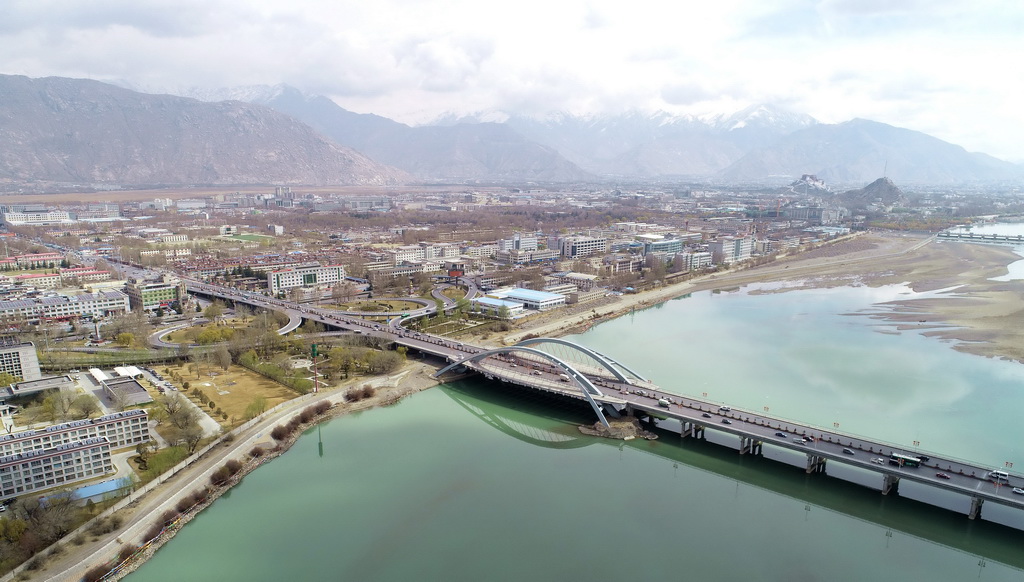 這是橫跨在拉薩河上的拉薩市區(qū)公路(4月3日無人機(jī)拍攝)。新華社記者 晉美多吉 攝這是橫跨在拉薩河上的拉薩市區(qū)公路(4月3日無人機(jī)拍攝)。新華社記者 晉美多吉 攝