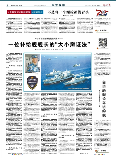 曾有一篇文章這樣說(shuō):靠譜,是對(duì)一個(gè)人最高的評(píng)價(jià)。在我眼里,青海湖艦是一艘靠譜的艦,劉永新也是一位靠譜的艦長(zhǎng)。