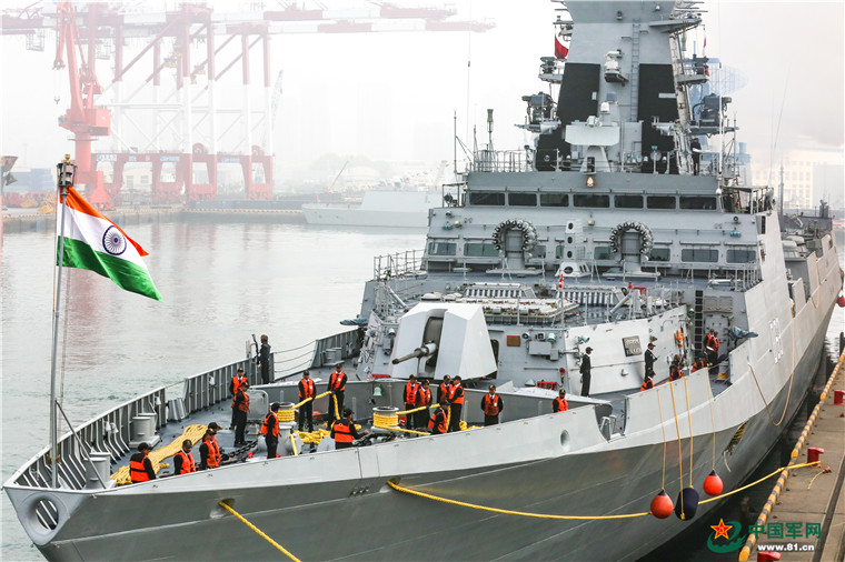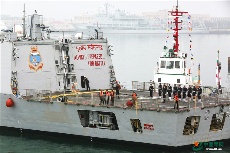 4月21日上午,印度派出的P-15A型首艦“加爾各答”號導(dǎo)彈驅(qū)逐艦(INS Kolkata 舷號D63)與迪帕克級綜合補給艦“沙克蒂”號(INS Shakti 舷號A57)相繼抵達青島大港碼頭,參加中國海軍成立70周年多國海軍活動。