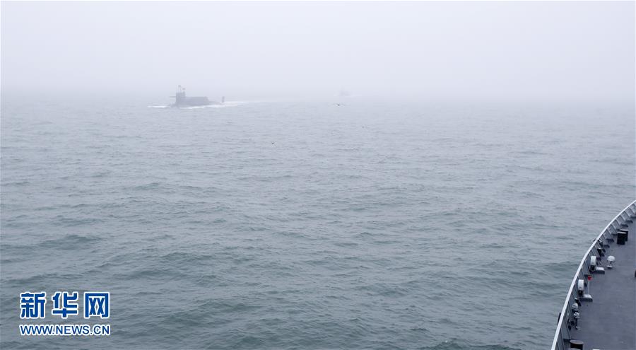 4月23日,慶祝中國(guó)人民解放軍海軍成立70周年海上閱兵活動(dòng)在青島附近海空域舉行。這是中國(guó)某新型核潛艇接受檢閱。新華社記者 李紫恒 攝