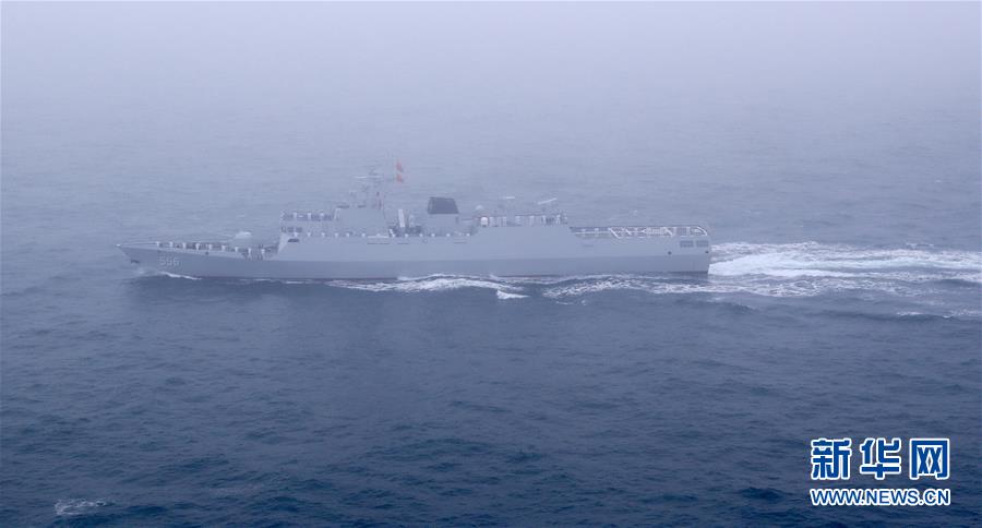 4月23日,慶祝中國人民解放軍海軍成立70周年海上閱兵活動(dòng)在青島附近??沼蚺e行。這是“五臺(tái)山”號(hào)登陸艦。 新華社記者 琚振華 攝