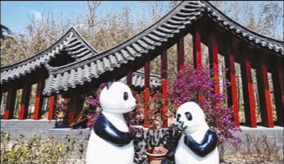 步入北京世園會四川園入口,“熊貓家園”的設計意圖一覽無余。入口左側(cè)為熊貓樂園,以抽象的四川川西風格特色建筑為背景,熊貓形態(tài)各異。“四川園分為‘熊貓川行’‘水潤天府’‘蜀往今來’三個主題區(qū),跟隨大熊貓的‘腳印’,游客可以飽覽四川深厚的歷史人文、優(yōu)美的自然風光和特色園藝園林,展示天府之國的魅力?!彼拇▓@設計師張杰介紹說。