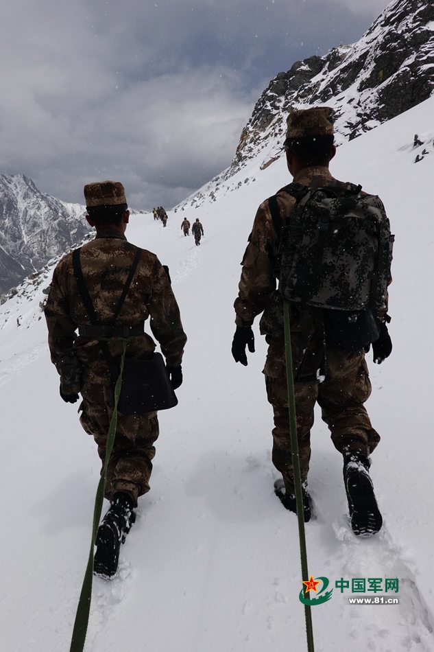 鏡頭里的兩名戰(zhàn)友,是有名的耐力王和爬坡王,他們身后的“救命繩”,拴住的正是年近花甲的記者。中國(guó)軍網(wǎng)記者柳軍 攝