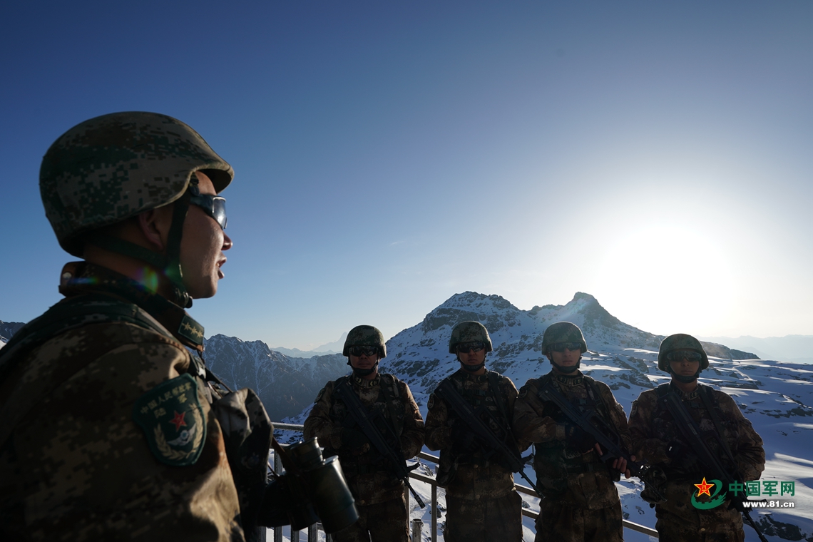 旭日剛剛爬上山頂,4名卓拉哨兵已經(jīng)全副武裝,集結(jié)待命。所在連指導(dǎo)員陳龍做簡(jiǎn)短動(dòng)員,吹響了巡邏號(hào)角。中國(guó)軍網(wǎng)記者柳軍 攝