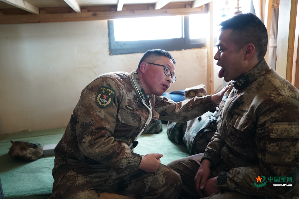 ?徒步上哨,西藏軍區(qū)邊防某團(tuán)軍醫(yī)劉達(dá)偉最牽掛的是哨兵們的健康,他來不及休息,立刻給坐在旁邊的上士蘇楓進(jìn)行體檢。中國軍網(wǎng)記者柳軍 攝