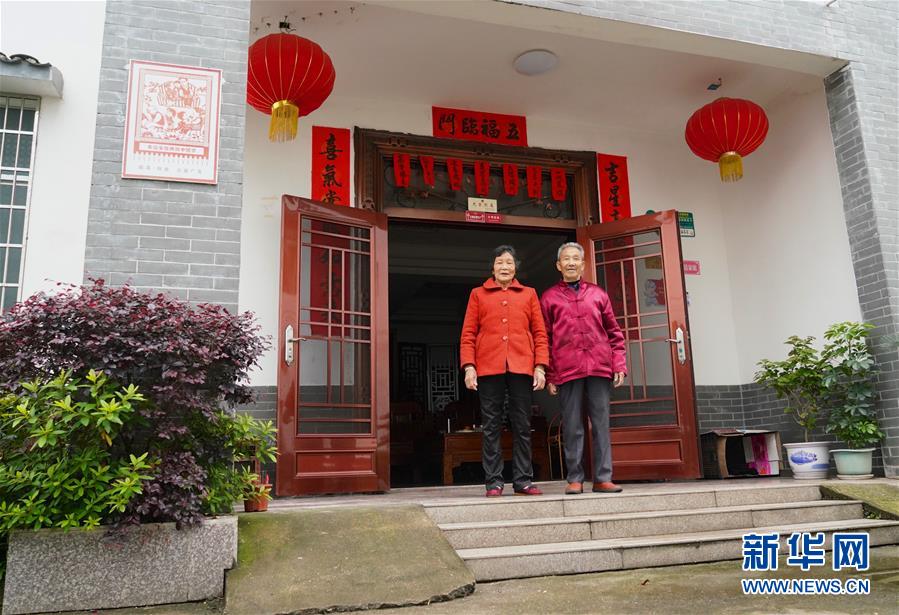 5月7日,江西瑞金華屋村居民華從祁和妻子在新家門前留影。 新華社記者 胡晨歡 攝
