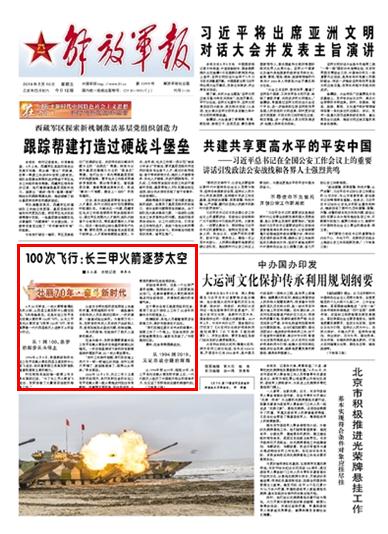 4月20日深夜,一枚火箭噴著橘紅色的火焰,從西昌衛(wèi)星發(fā)射中心騰空而起,飛向浩瀚星空。這是長征三號甲系列運載火箭的第100次飛行。從長三甲系列火箭的首飛到第100次飛行,背后凝聚著一代代西昌航天人追夢不止的奮斗印記。請關(guān)注今日《解放軍報》的詳細報道——