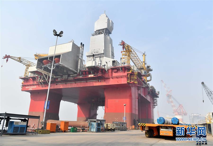 這是在中集來福士海洋工程有限公司碼頭拍攝的建造中的海上平臺(2月28日攝)。 新華社記者 朱崢 攝
