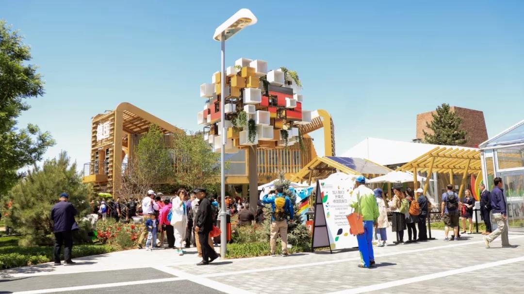 另外,德國展園內(nèi)還有巢箱、陽光溫室、紀念品商店等區(qū)域。在巢箱,人們翻動箱蓋就可以看到相關信息;沿著巢箱走出展廳就能看到陽光溫室,這里是德國學生們學習種植知識的課堂,不僅有專門從德國運來的書桌椅,還展示了德國人們對2060年的生活方式設想。