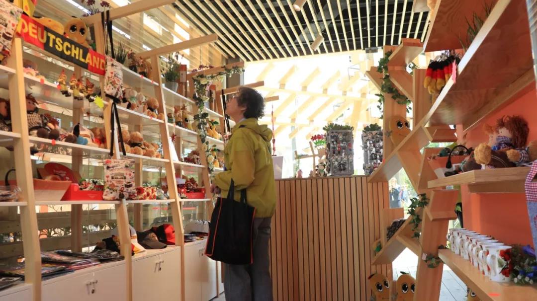 與溫室毗鄰的是一個精致的紀念品商店,德國展園的小形象大使Sammi遍布小店各個角落,可愛生動。Sammi的設計原型為種子,代表著德國展園對未來生活的希望與祝福。