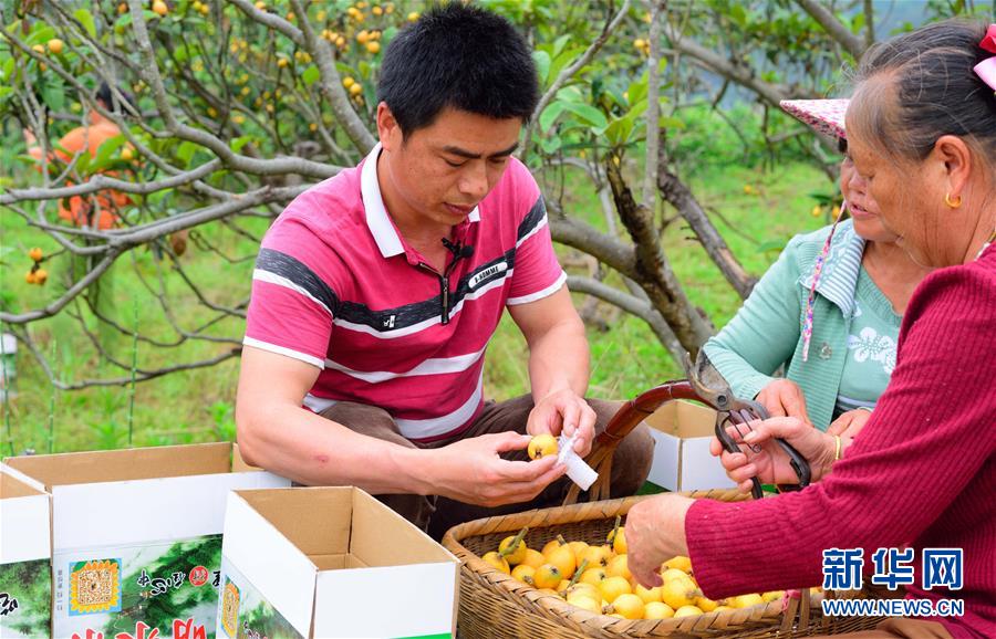 沙洲村村民朱利志(左)在果園將采摘的水果裝箱(4月26日攝)。新華社記者 范軍威 攝