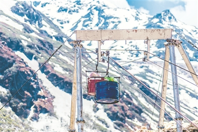 5月上旬,筆者前往卓拉哨所采訪,用鏡頭記錄下官兵用索道向哨所運送物資的場景。