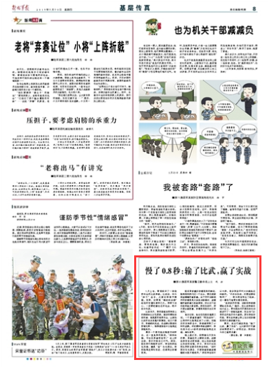 “5月上旬,營(yíng)里組織了一場(chǎng)連貫作業(yè)的比武考核。比武前,作為“種子”選手,大家對(duì)我寄予厚望。而我,對(duì)營(yíng)里“精武標(biāo)兵榜”桂冠的位置也期待已久。我暗下決心:一定要把握住這次機(jī)會(huì),絕不容許失誤?!闭?qǐng)關(guān)注今日《解放軍報(bào)》的報(bào)道——