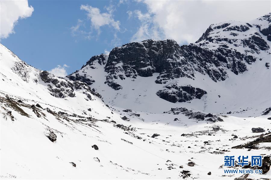 卓拉哨所官兵徒步前往某山口查看情況(2019年4月19日攝)。 新華社發(fā)(羅凱 攝)