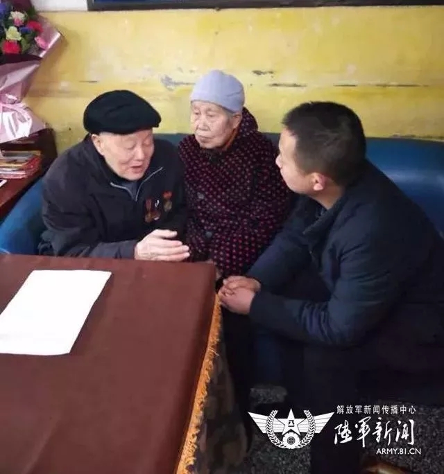 ▲聆聽(tīng)張富清家老人講戰(zhàn)斗故事