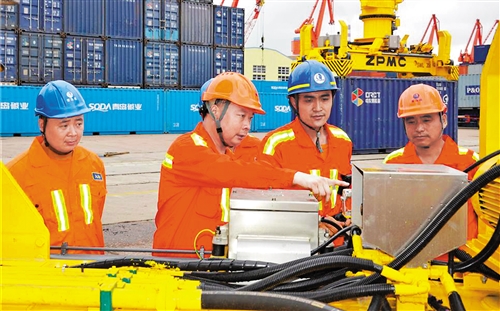 “以前,碼頭裝卸公司發(fā)展主要靠流汗,工人掙的是辛苦錢。如今,在物流、商貿(mào)流、資金流和信息流深度融合的港口現(xiàn)代物流體系中,我們都是靠‘兩個腦子’干活。一個是人腦,把用腦和用力相結(jié)合;另一個是電腦?!逼みM軍是青島港有名的“點子大王”,他勵志要把裝卸工從繁重的體力勞動中解放出來,讓搬搬抬抬、裝裝卸卸的力氣活變得省時省力高效。