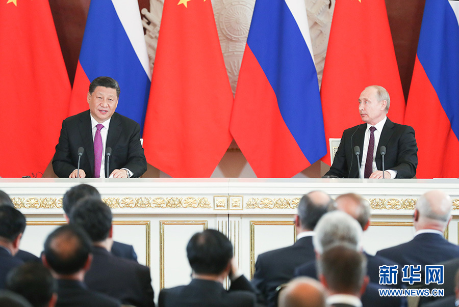 6月5日,國家主席習(xí)近平在莫斯科克里姆林宮同俄羅斯總統(tǒng)普京會(huì)談。這是會(huì)談后,兩國元首共同會(huì)見記者。 新華社記者 姚大偉 攝