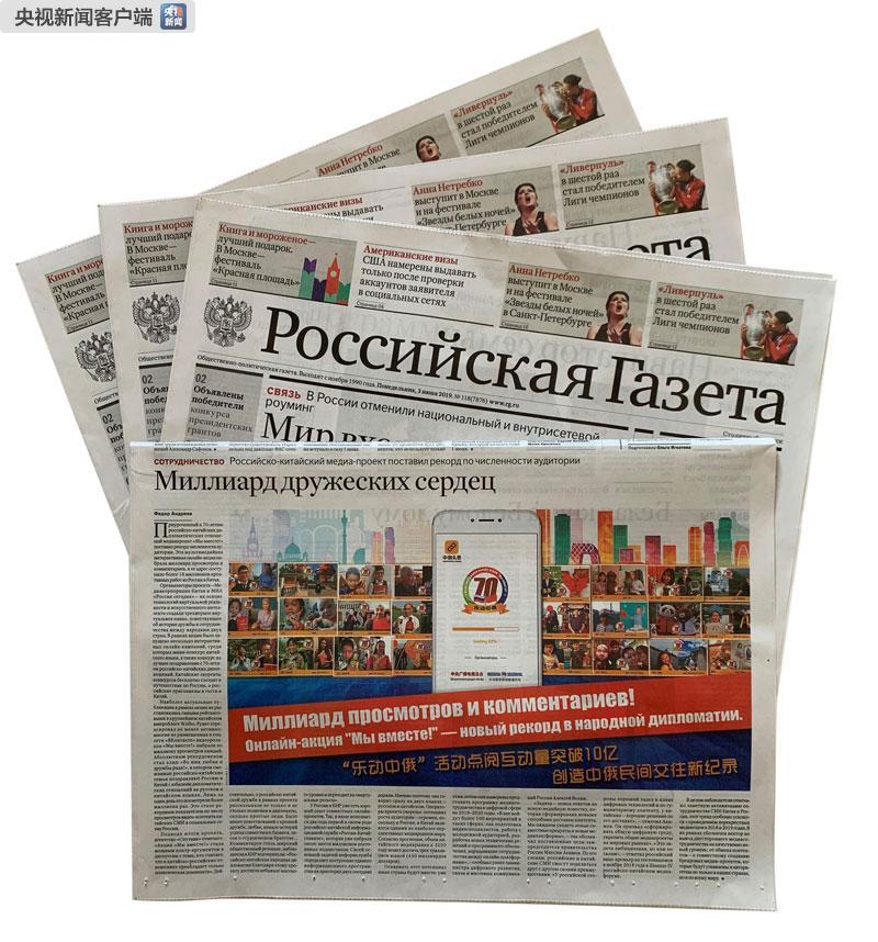 △6月3日出版的《俄羅斯報》用半個版刊登題為《億萬顆友好之心》的文章,詳細報道了“樂動中俄”活動內(nèi)容與成果。(國廣記者蔡靖骉提供)