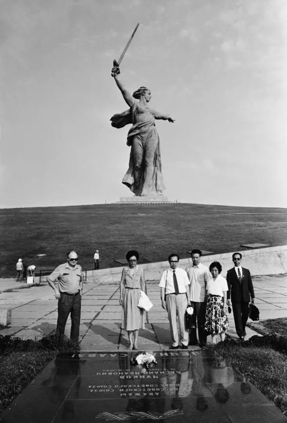 中國(guó)記者在伏爾加格勒馬馬耶夫山崗合影。 (1987年,塔斯社稿)